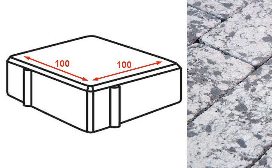 Плита тротуарная Готика Granite FINERRO, квадрат, Диорит 100х100х80 мм