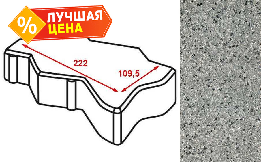Плитка тротуарная Готика Granite FERRO, зигзаг/волна, Белла Уайт 222х109,5х60 мм